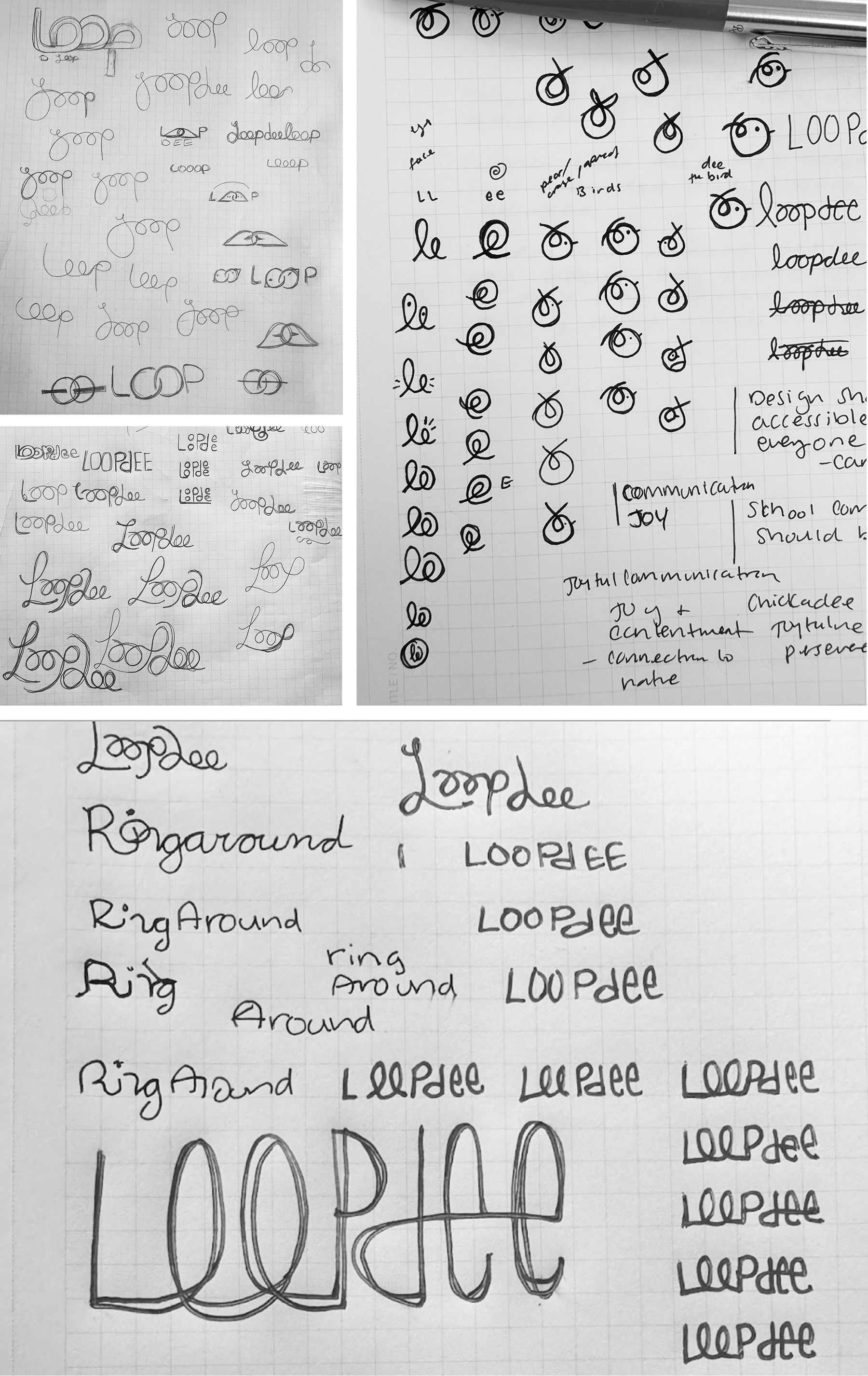 For the mark we needed a solution with a strong icon. The Loopdee chickadee “Dee” evokes chatter and her body brings us back to loops. Paired with hand-type for the lettermark we are left with a joyful symbol that scales well while standing out on a busy phone screen.